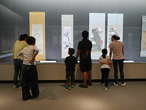 大きな屏風や掛け軸を近くで見て、絵の中に隠れているいきものを探します。