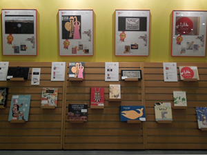 ボローニャ展には、まだ絵本となっていない作品が多く入選していますが、絵本として出版されているもの、出版途中のものなどもあります。入選作品で絵本になっているものは、できる限り集めて、展示室でご紹介しています。その他、入選作家の別の絵本や、今年の審査員の絵本なども一緒に手にとってご覧頂けます。