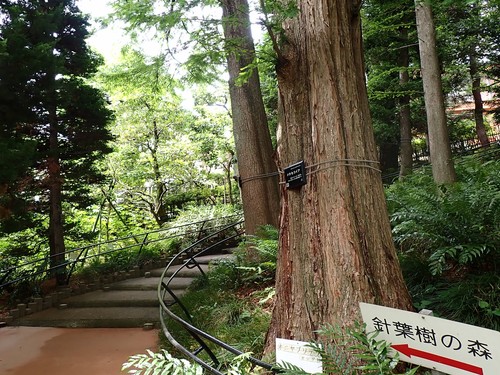 建材に使われるスギ、サワラ、松ぼっくりができる各種松の木など、広い斜面に針葉樹が多種集まっています。