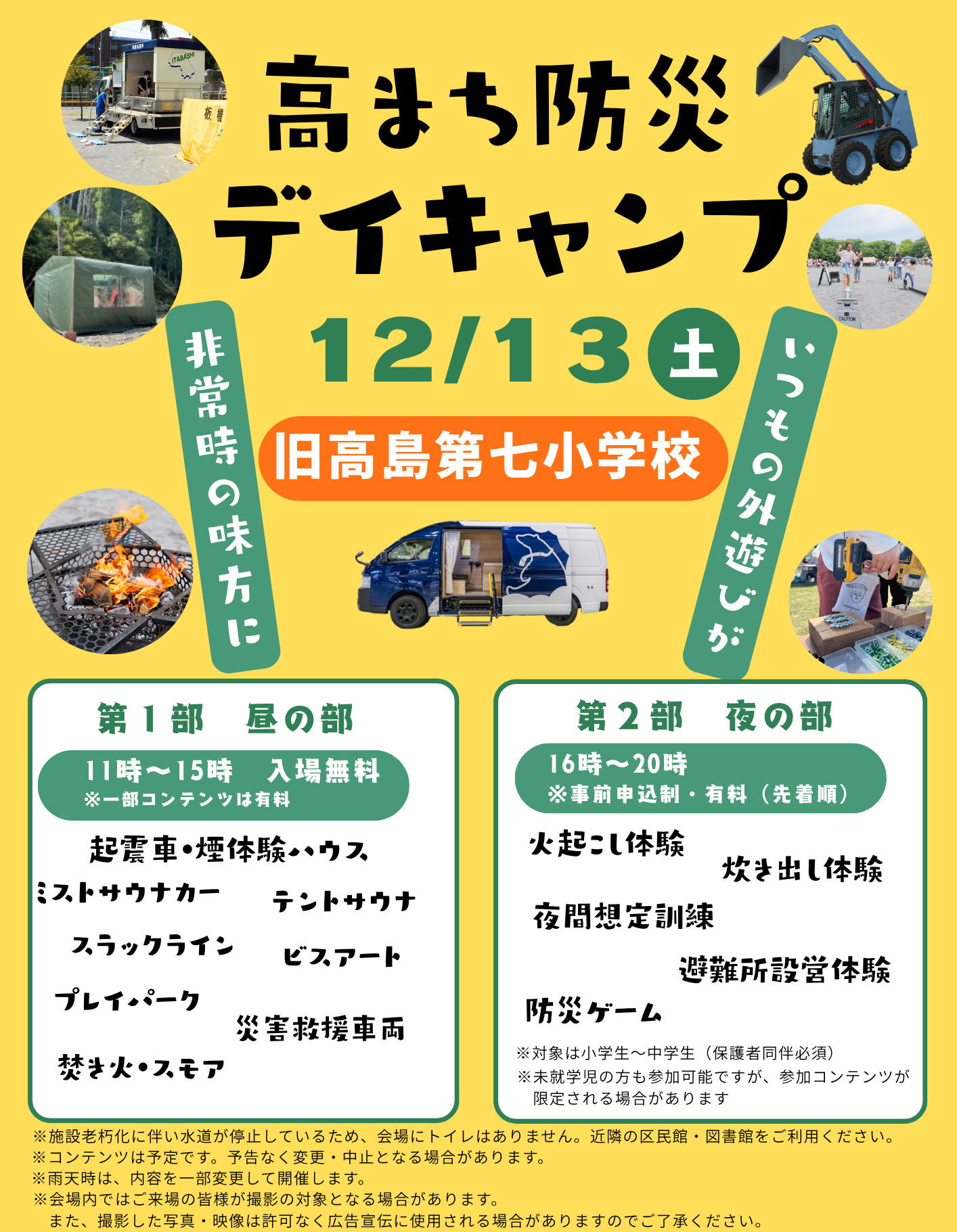 このイベントは、高島平グランドデザインの重点テーマ「防災」に基づき、地域防災力の強化を目指す取組です。