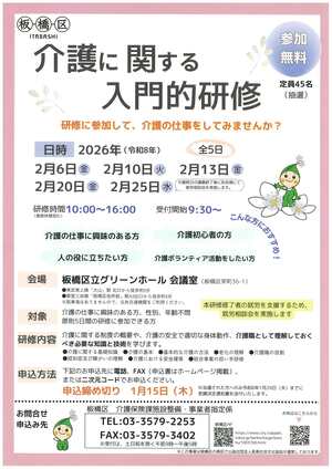 区内介護事業所で働きたい方を対象とした研修です。未経験者が介護に関する基本的な知識や技術を学び、介護の業務に携わる上での出発点となる研修です。
